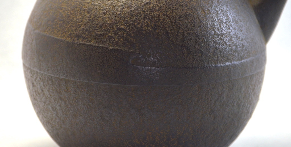 I will introduce "Oborozuki tetsubin" which is the most popular tetsubin in our studio works and it has round shape like the full moon, which is its feature.
