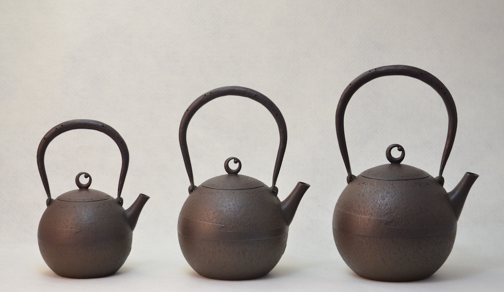 I will introduce "Oborozuki tetsubin" which is the most popular tetsubin in our studio works and it has round shape like the full moon, which is its feature.