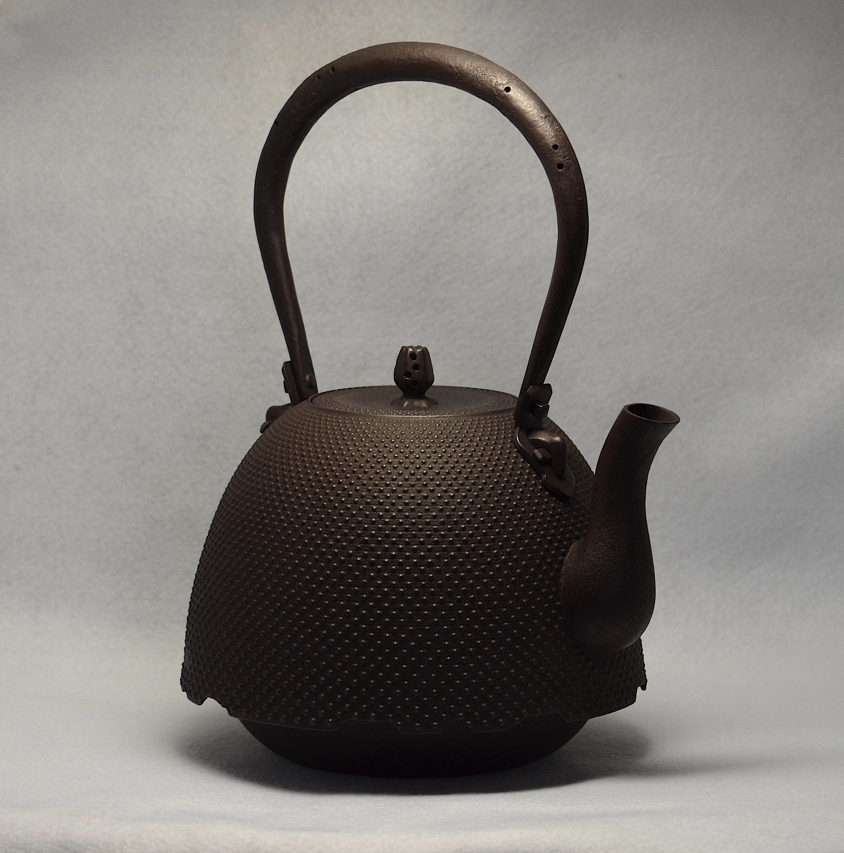 Great proficiency is required to create a regular Arare pattern that is elaborate and exquisite across the whole surface of the Tetsubin.